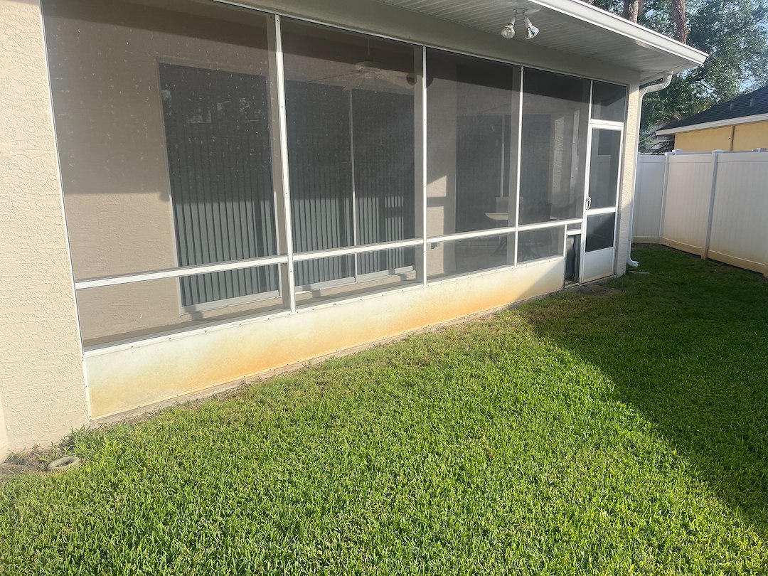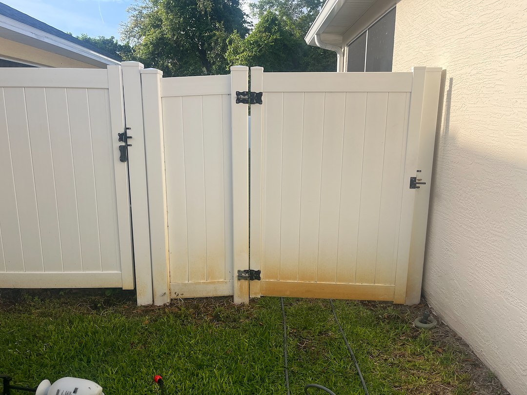 We recently completed a vinyl fence washing project in the Pinnacle Park neighborhood of Port Orange, Florida that completely transformed the look of the property. The fence had heavy buildup of rust stains, mold, and algae that made it look worn and neglected. Using a specialized soft wash process along with targeted treatments, we safely broke down and removed all contaminants without damaging the vinyl. Once rinsed, the difference was immediate—the fence looked bright, clean, and almost brand new again. The homeowner was thrilled to see such a dramatic improvement, and the fence is now not only more attractive but also better protected from future buildup.
