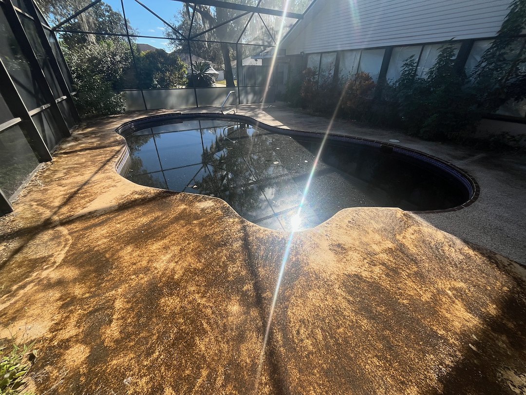 We just wrapped up a patio cleaning project in Port Orange, Florida on a screened-in pool enclosure area that was extremely dirty and challenging due to two different surface types that required special care. Built-up grime, organic staining, and heavy discoloration had accumulated over time, making the area look dull and neglected. Using the proper cleaning methods and proper pressure levels for each surface, we were able to safely and thoroughly clean the entire pool deck without damage. The transformation was dramatic-both surfaces came out bright, clean, and refreshed, instantly improving the look and feel of the outdoor living space and making it enjoyable to use again.