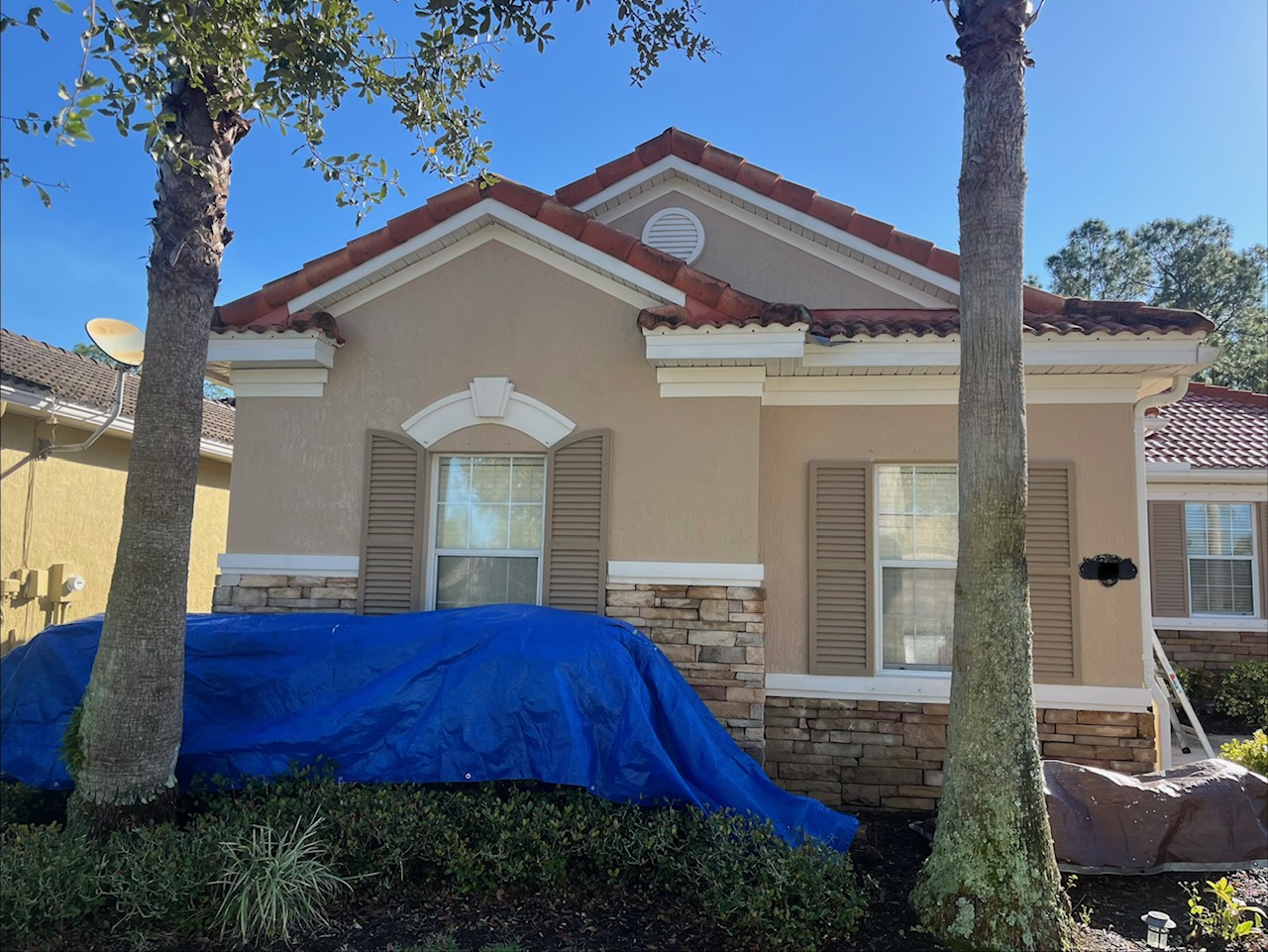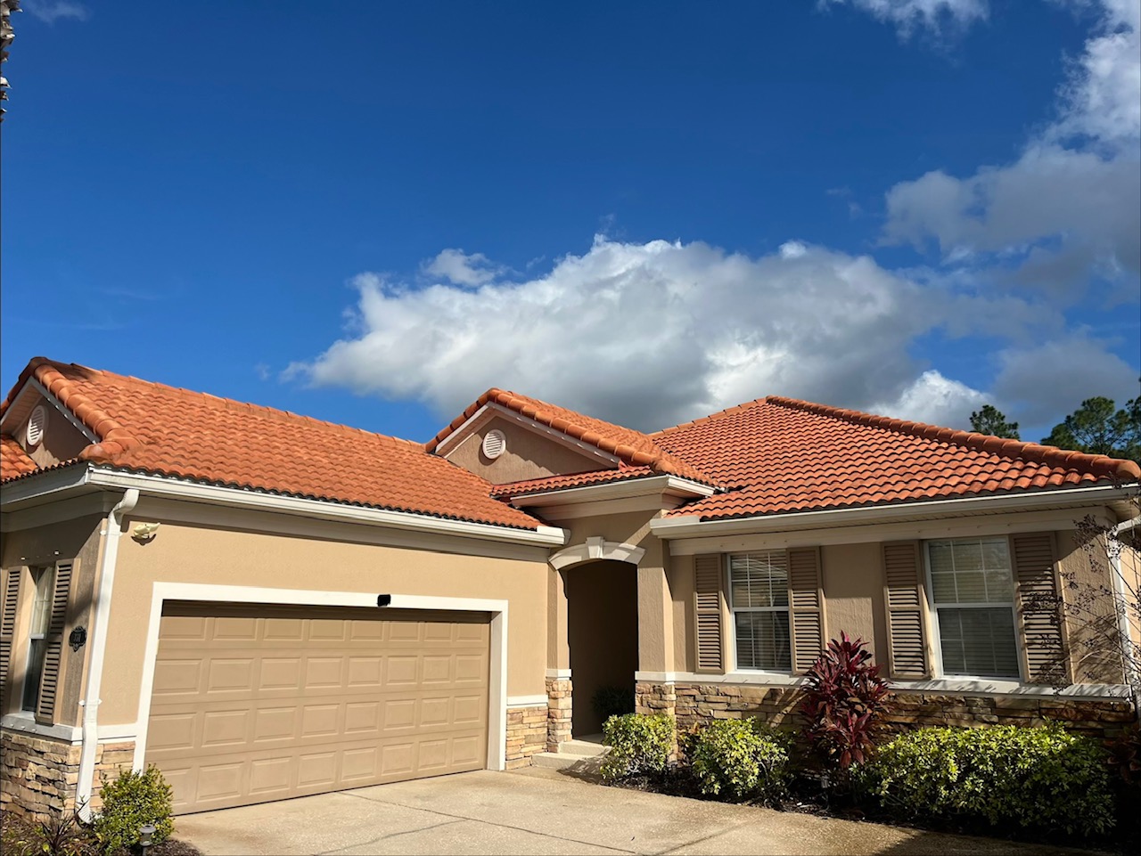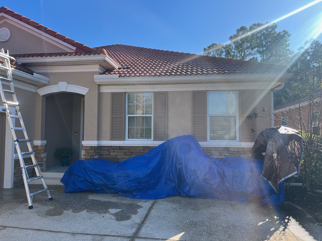 We recently completed a tile roof washing project in the Venetian Bay neighborhood of New Smyrna Beach, Florida that completely transformed the home's appearance. Using a safe, low-pressure soft washing system, we removed all of the black streaks and organic buildup, restoring the roof's original color without causing damage to the tiles. Throughout the process, we took extra care to protect the surrounding landscaping and property, keeping plants, grass, and outdoor surfaces safe. The result was a clean, refreshed roof and a thrilled homeowner that loved the dramatic improvement in curb appeal!